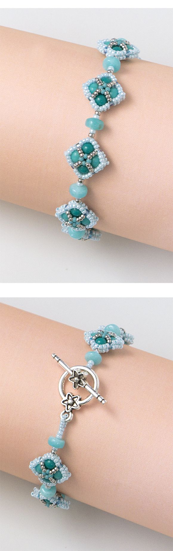 ひし形パーツのブレスレットキット・ターコイズ・KT382-2
